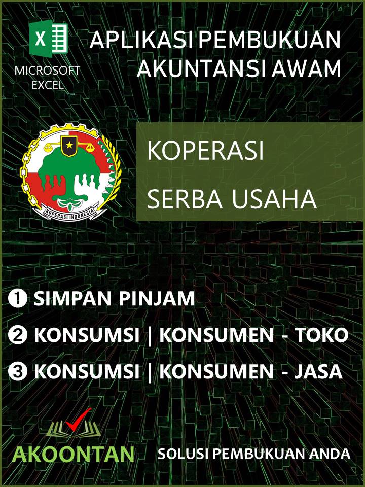 Aplikasi Akuntansi Koperasi Serba Usaha Jasa | Dagang | Simpan Pinjam adalah aplikasi Excel untuk mereka yang ingin melakukan pembukuan dan membuat laporan keuangan secara otomatis untuk koperasi yang bergerak di tiga jenis usaha, yaitu usaha jasa, dagang/toko dan simpan pinjam dimana koperasi menyediakan layanan jasa kepada anggota dan non anggota.