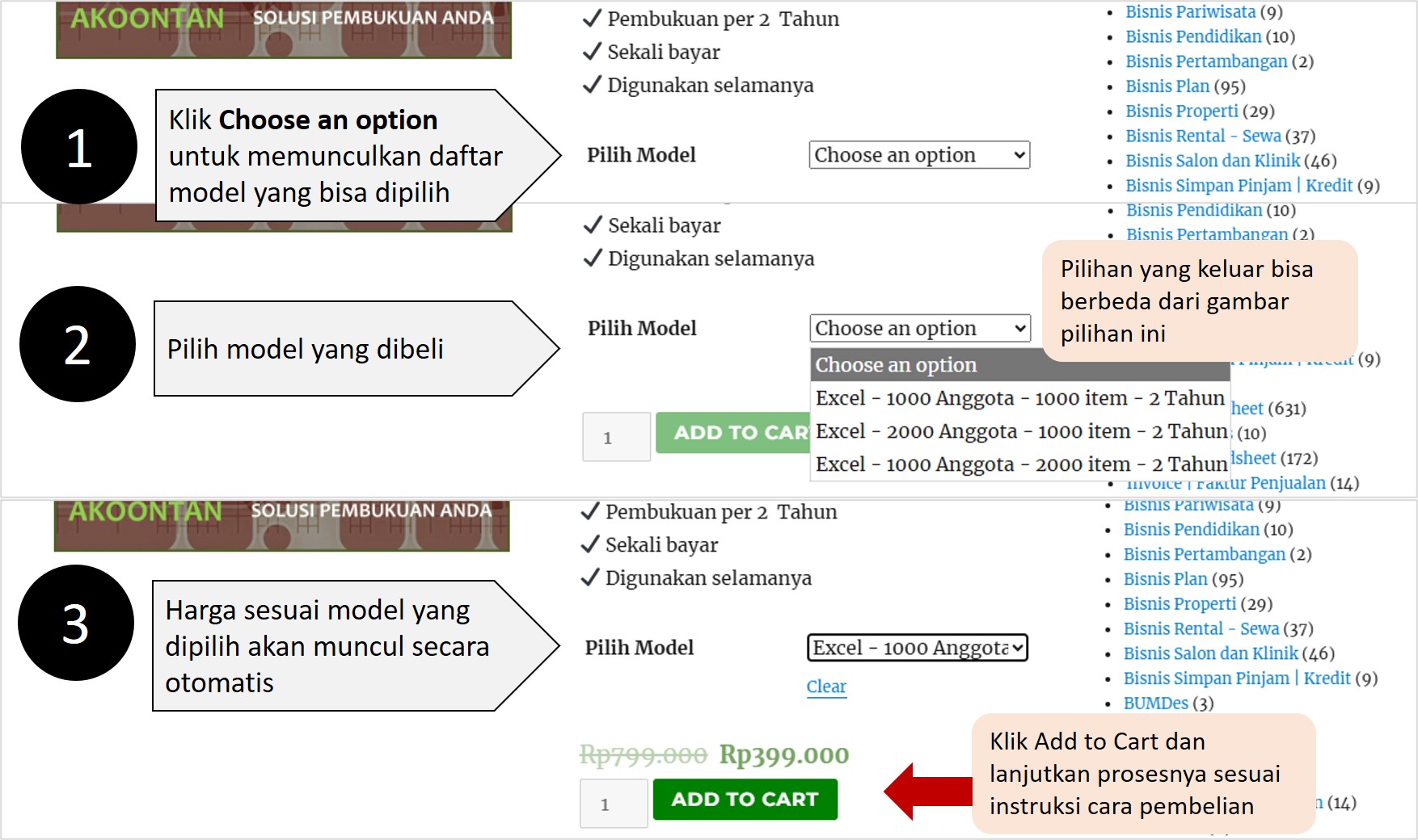 Bisa dipelajari cara memilih produk sesuai gambar berikut dan dilanjutkan dengan melakukan pembelian sesuai informasi di Cara Pembelian.