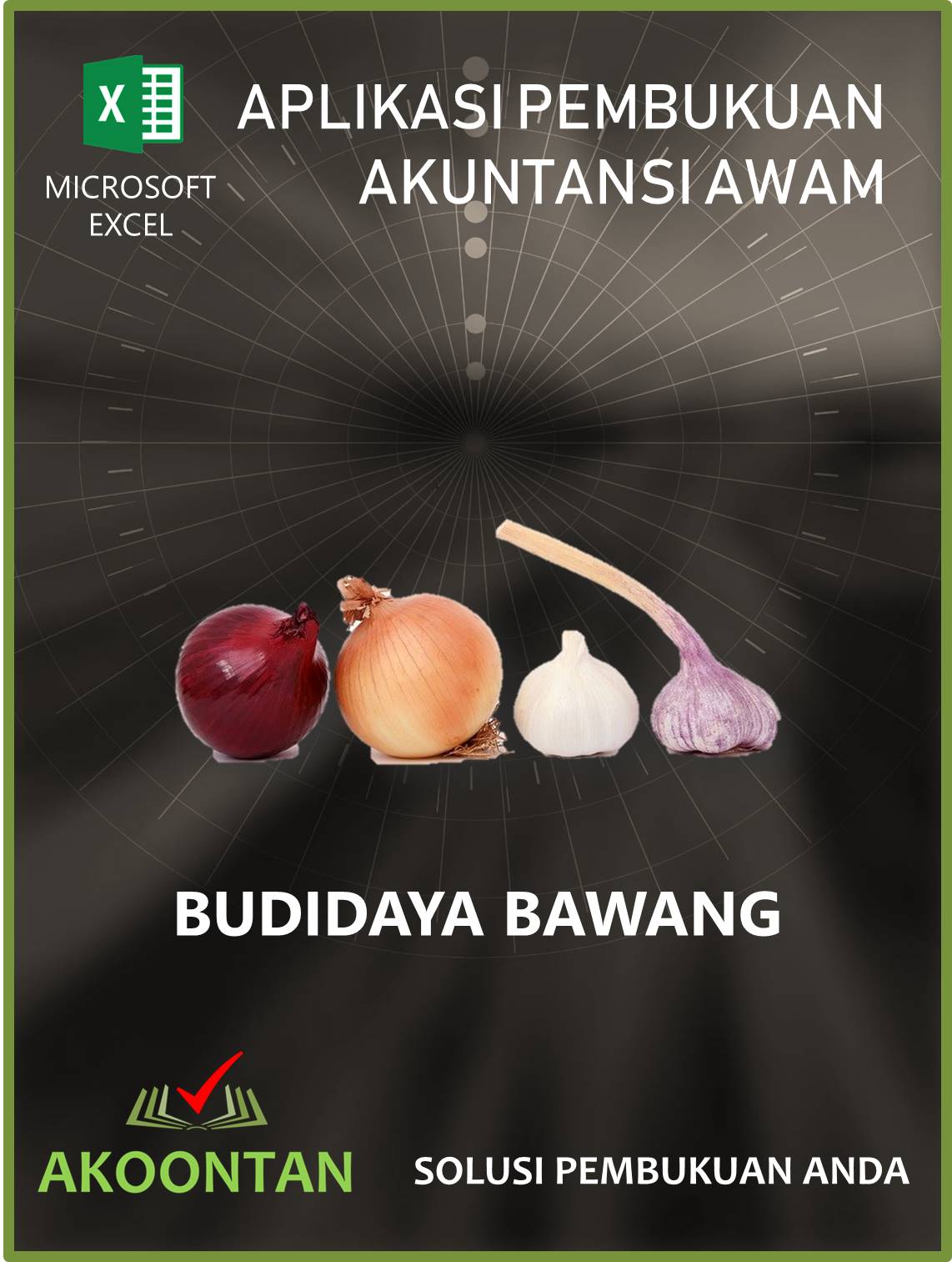Excel Akuntansi Budidaya Bawang adalah aplikasi Excel untuk melakukan pembukuan dan pembuatan laporan keuangan khusus untuk jenis usaha budidaya bawang. Bawang termasuk komoditas usaha yang selalu dibutuhkan. Aplikasi ini bisa digunakan untuk melakukan pembukuan usaha budidaya bawang merah, bawang putih ataupun jenis tanaman lain yang sejenis.